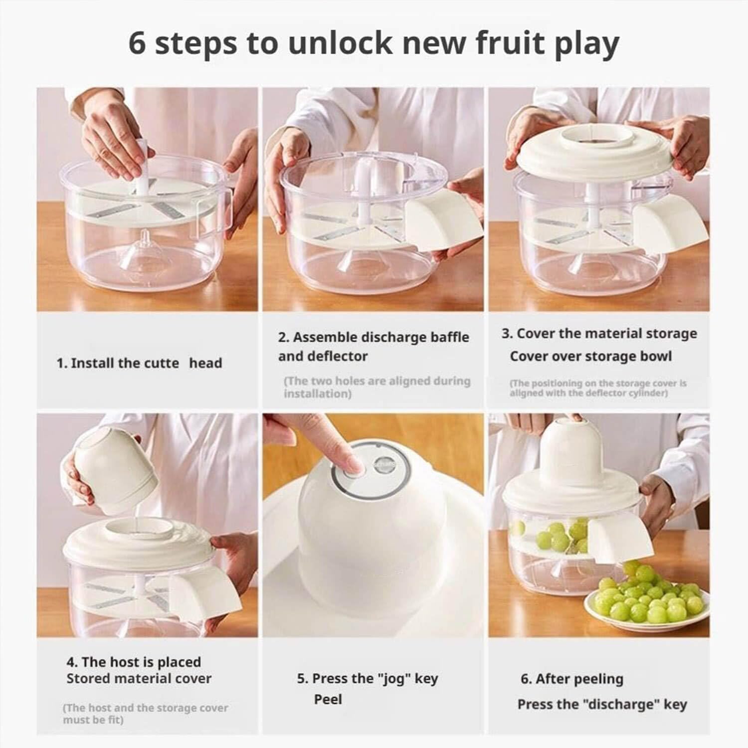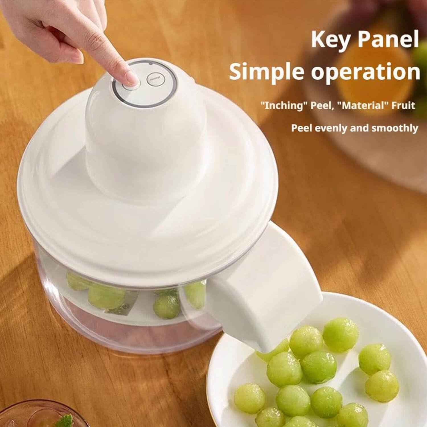 PEELING LIKE MAGIC, EFFORTLESSLY AND MESS-FREE - Just press a button and let the machine do the work: perfectly peeled fruit in 25 seconds flat. The 50W motor peels powerfully yet quietly, thanks to smart cooling technology that prevents overheating. SMART BLADES, ZERO WASTE - Five ultra-thin stainless steel blades glide across the skin without cutting into the fruit, so every apple, peach, or pear stays juicy and plump. Even delicate grapes come out pristine, with no flesh lost, ready to enjoy.