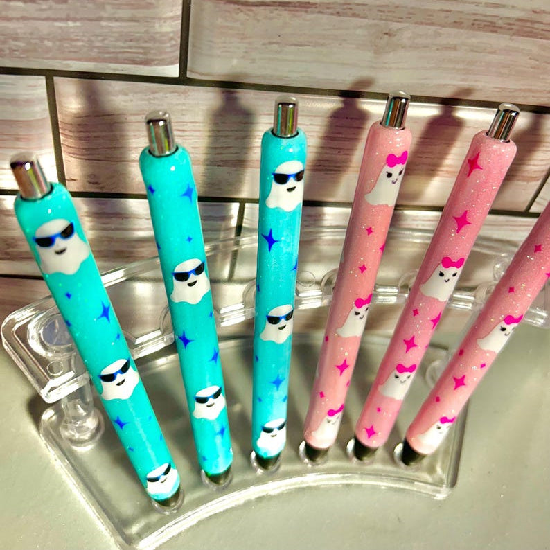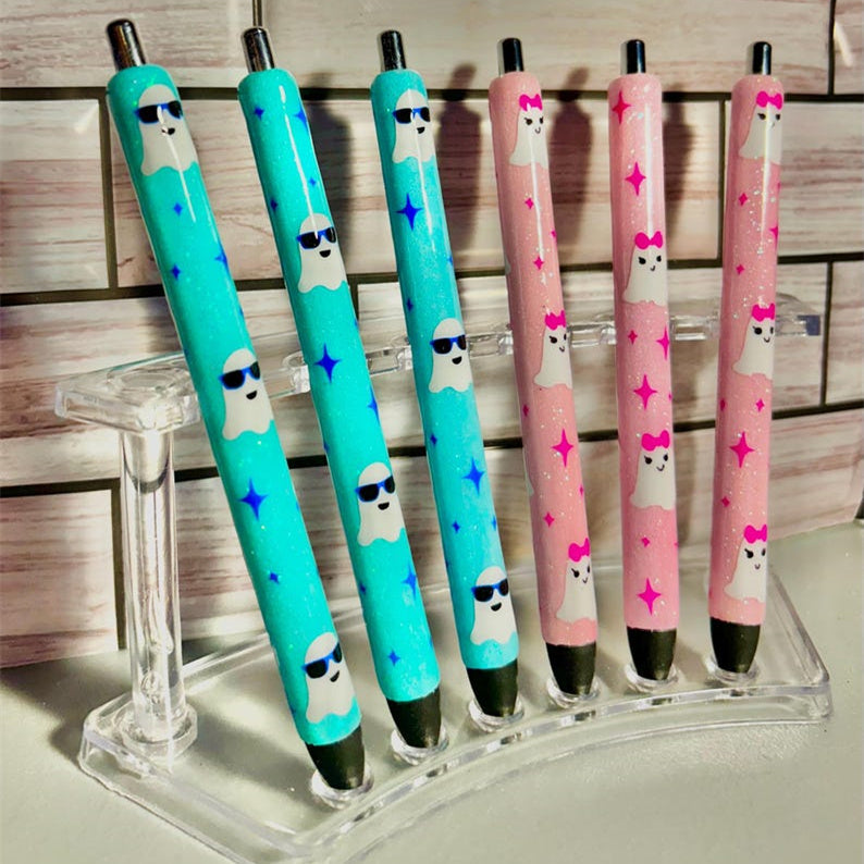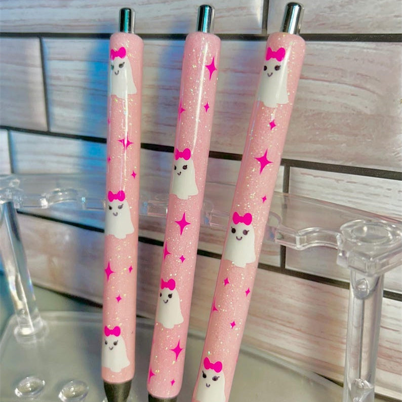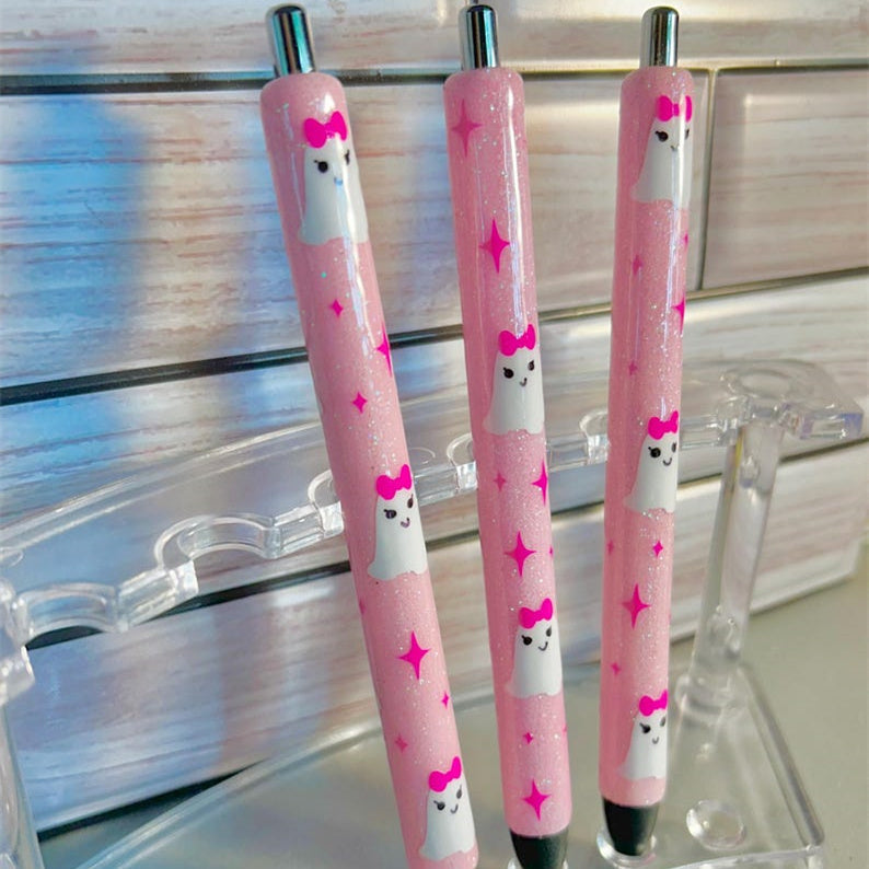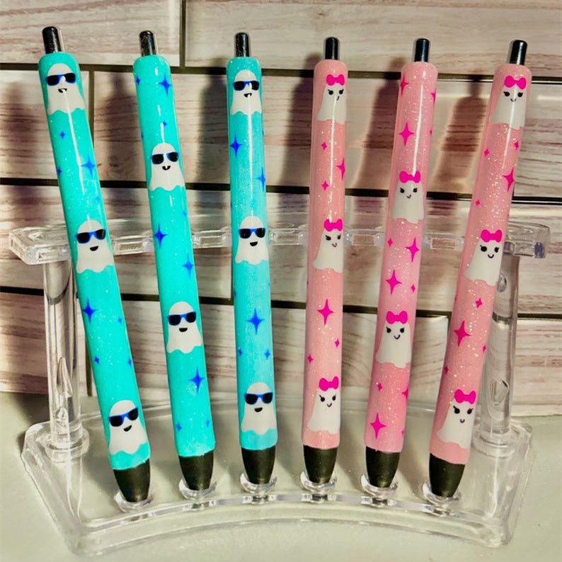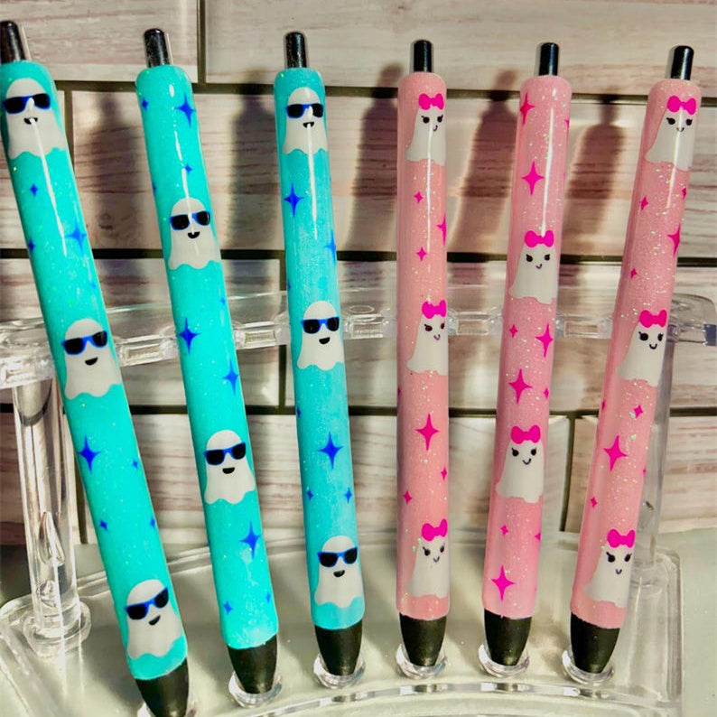 👻🎃These Ghostie Pens bring spooky-cute fun to your writing! Perfect for daily notes or adding a festive vibe to Halloween, these ghost pens are your pocket-sized magic companions.✨🕸 Designed with permanent vinyl sealed in glossy UV resin, these pens shine with long-lasting style. The refillable 0.7 mm black ink cartridge ensures smooth writing—like little ghosts leaving traces of Halloween magic on your pages.