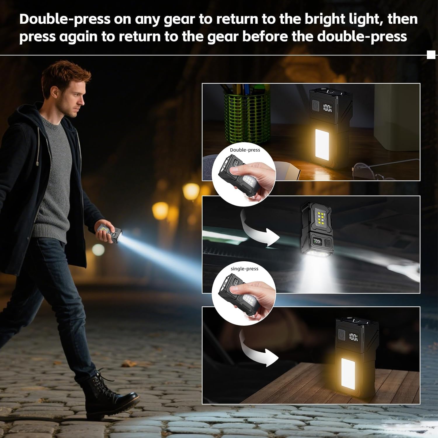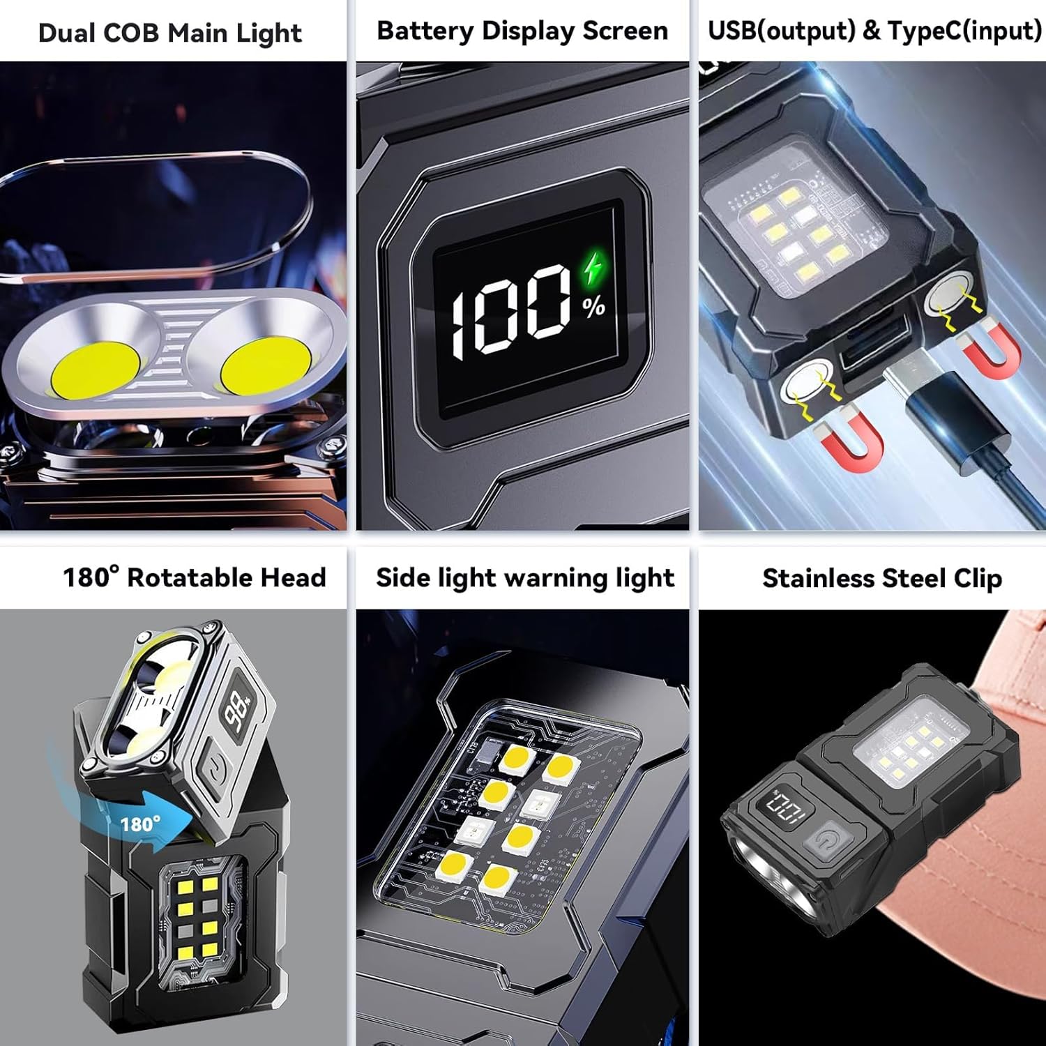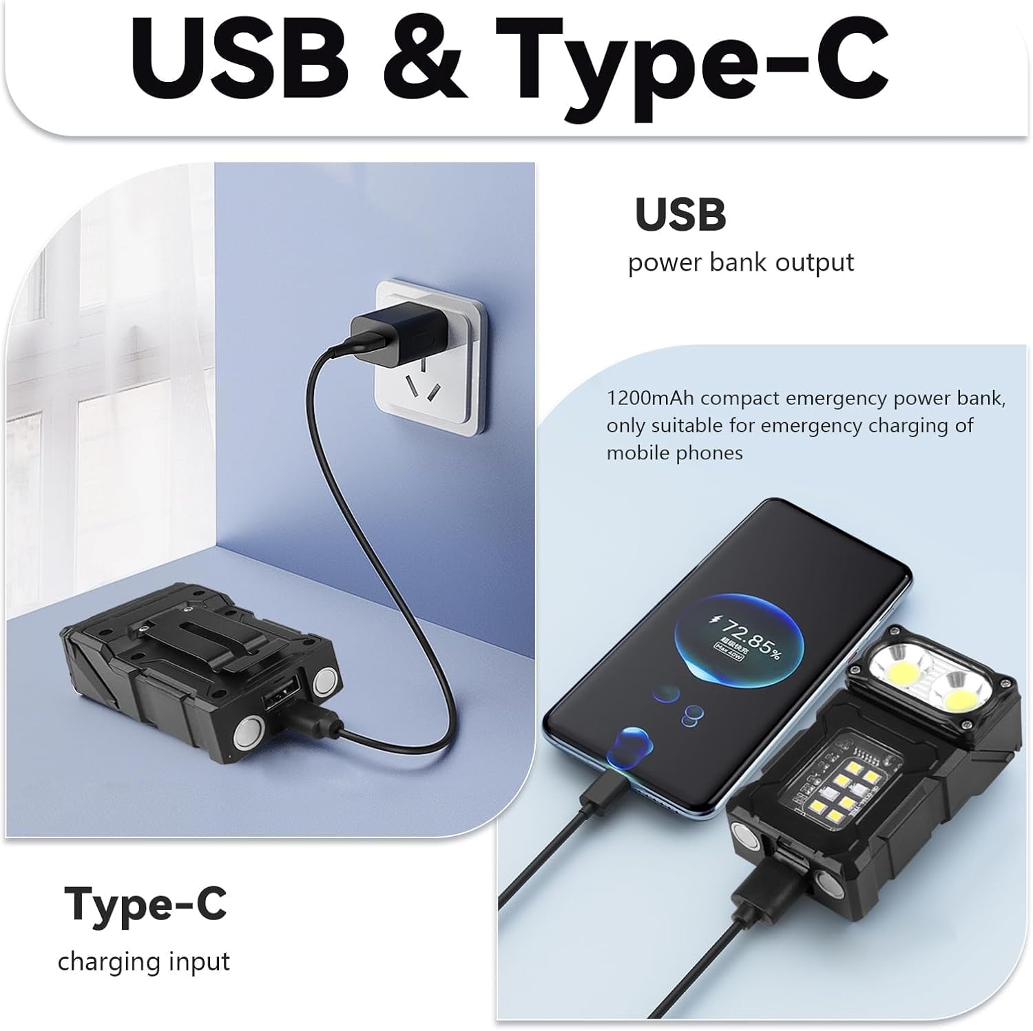 - Magnetic Base, Clip & Power Bank: Attach to metal surfaces or clip to belts; 2000mAh rechargeable battery offers 10+ hours runtime and charges phones in emergencies.